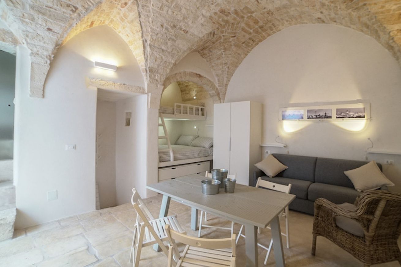 Il divano diventa un letto matrimoniale oltre ad un letto a castello per 3 persone.