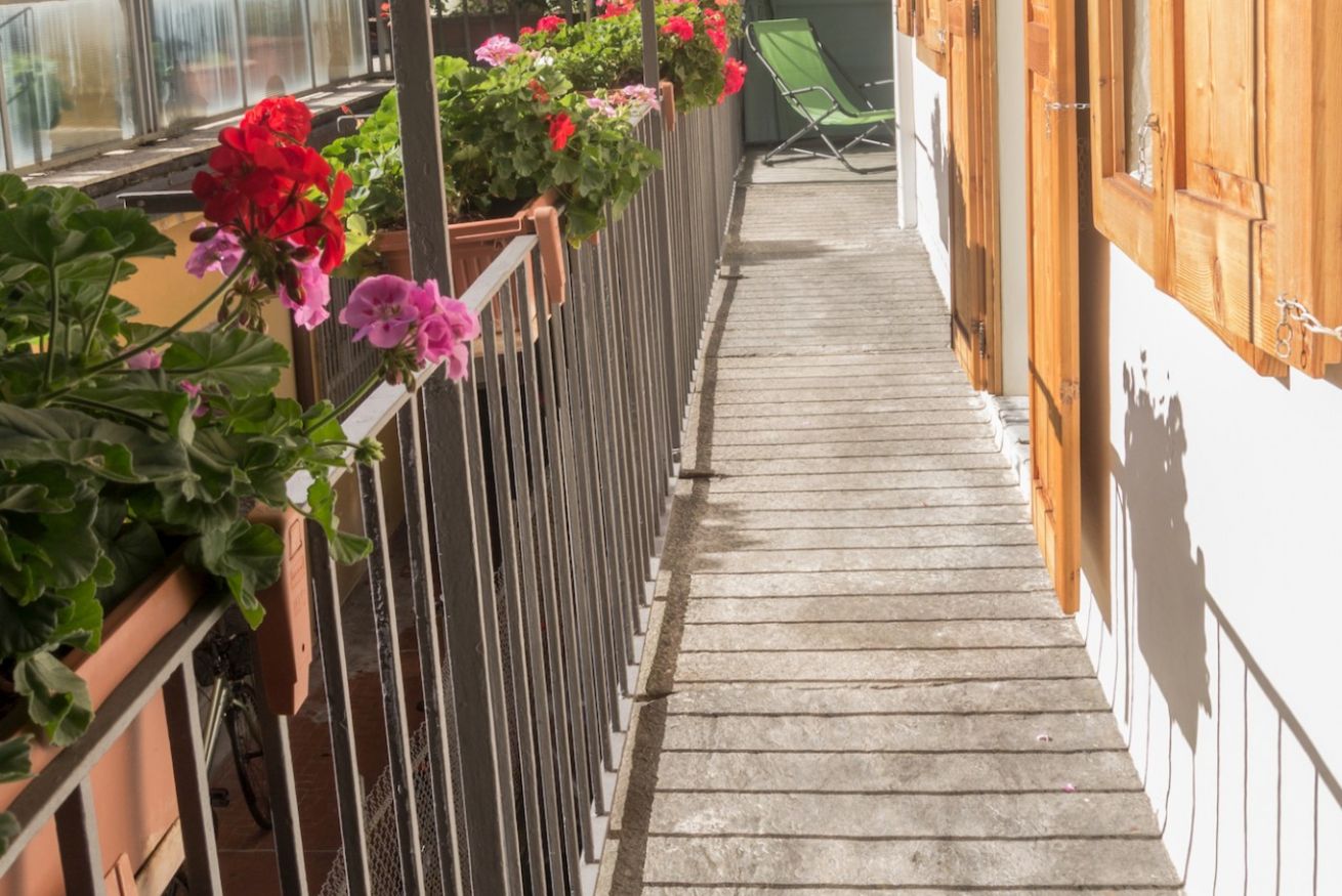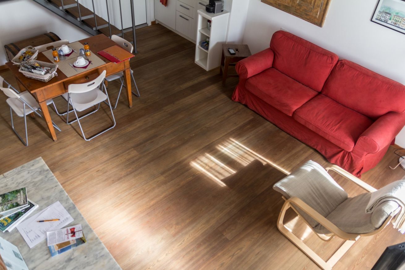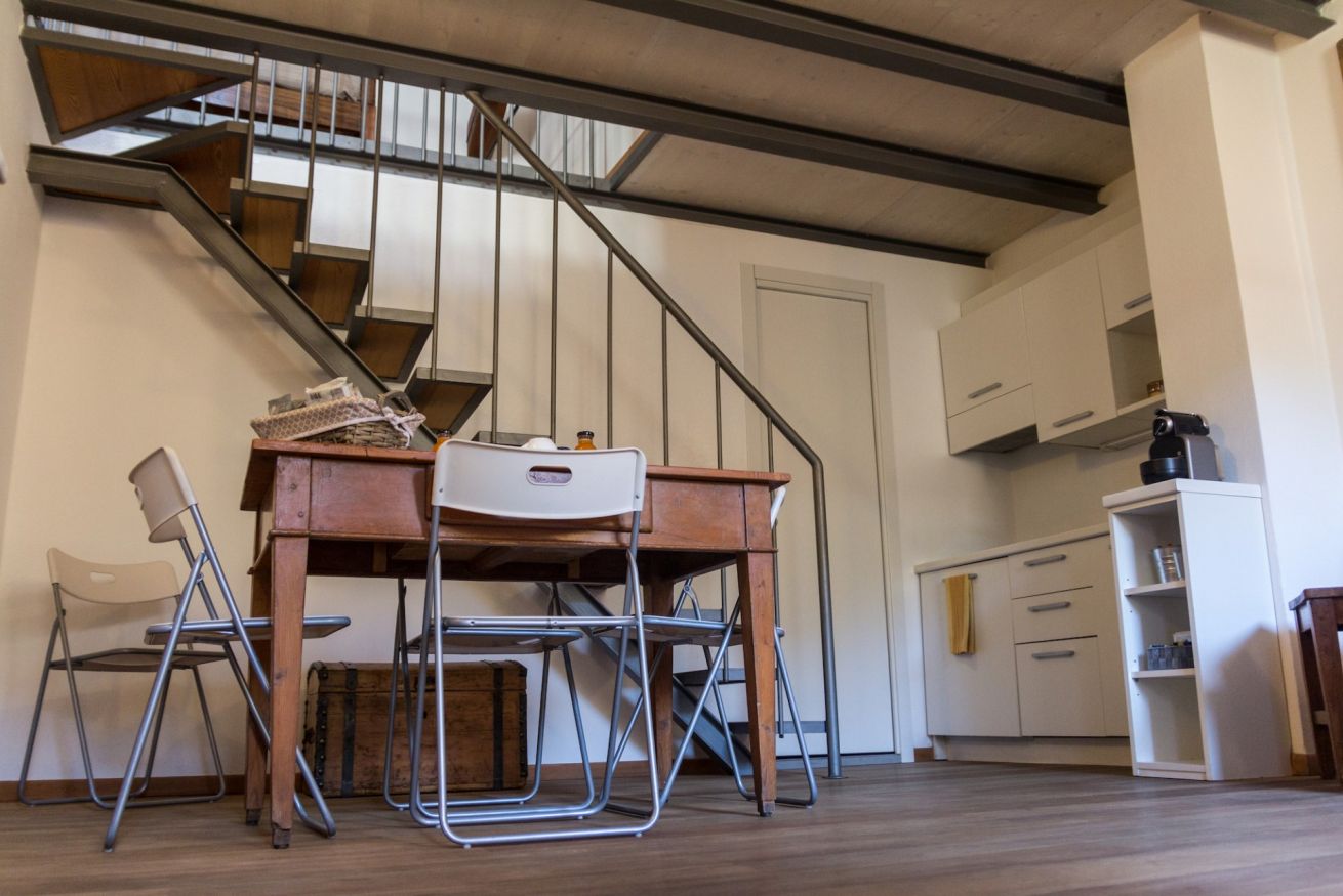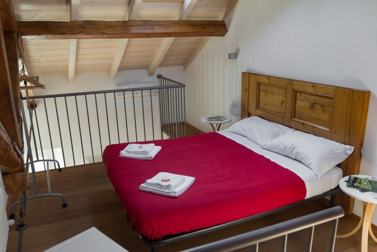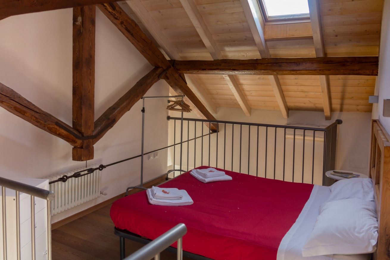 Il nostro appartamento Lilli è mansardato con un suggestivo soppalco con capriata a vista e si affaccia su un terrazzo di ringhiera.